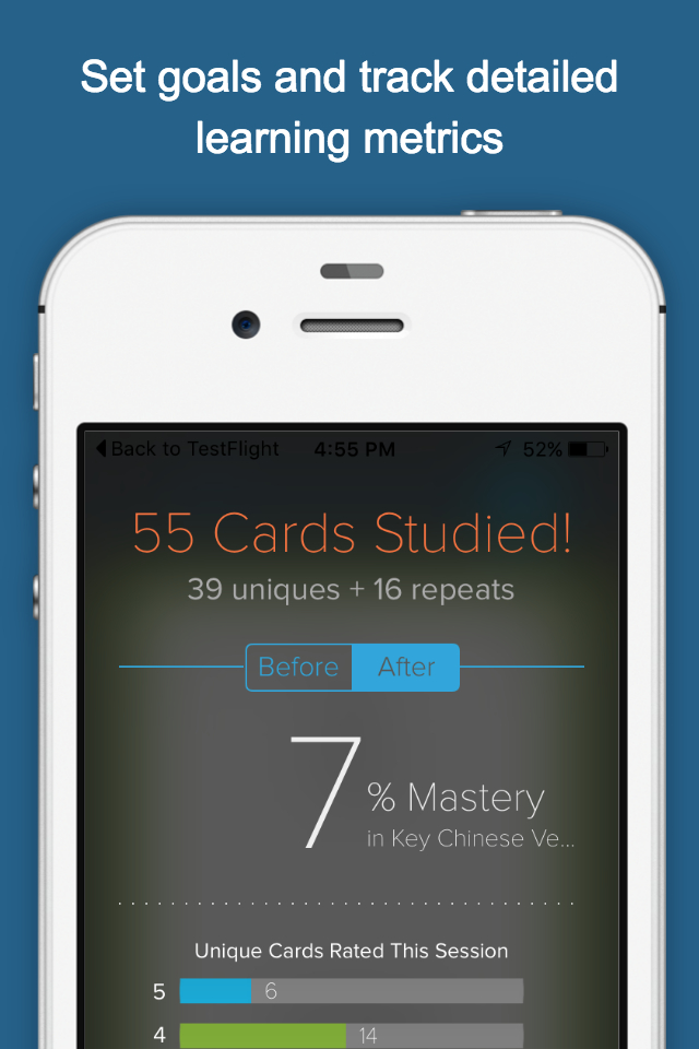 Boost your knowledge of Mandarin Chinese vocabulary, stroke order, and fundamental word and grammar elements FASTER than with any other app on iTunes. Applying the latest in cognitive science, Brainscape introduces concepts and vocabulary words in order from most foundational to most complex, and repeats them in a pattern that is just right for YOUR brain.