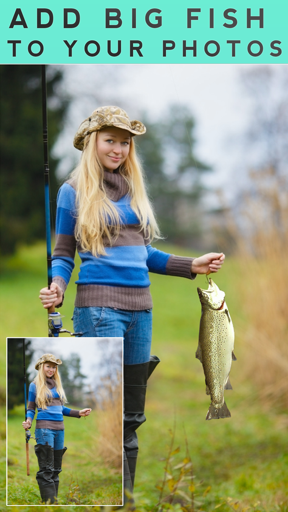 Easily add huge fish to your photos. Show off to your friends at what an awesome fisherman you are.