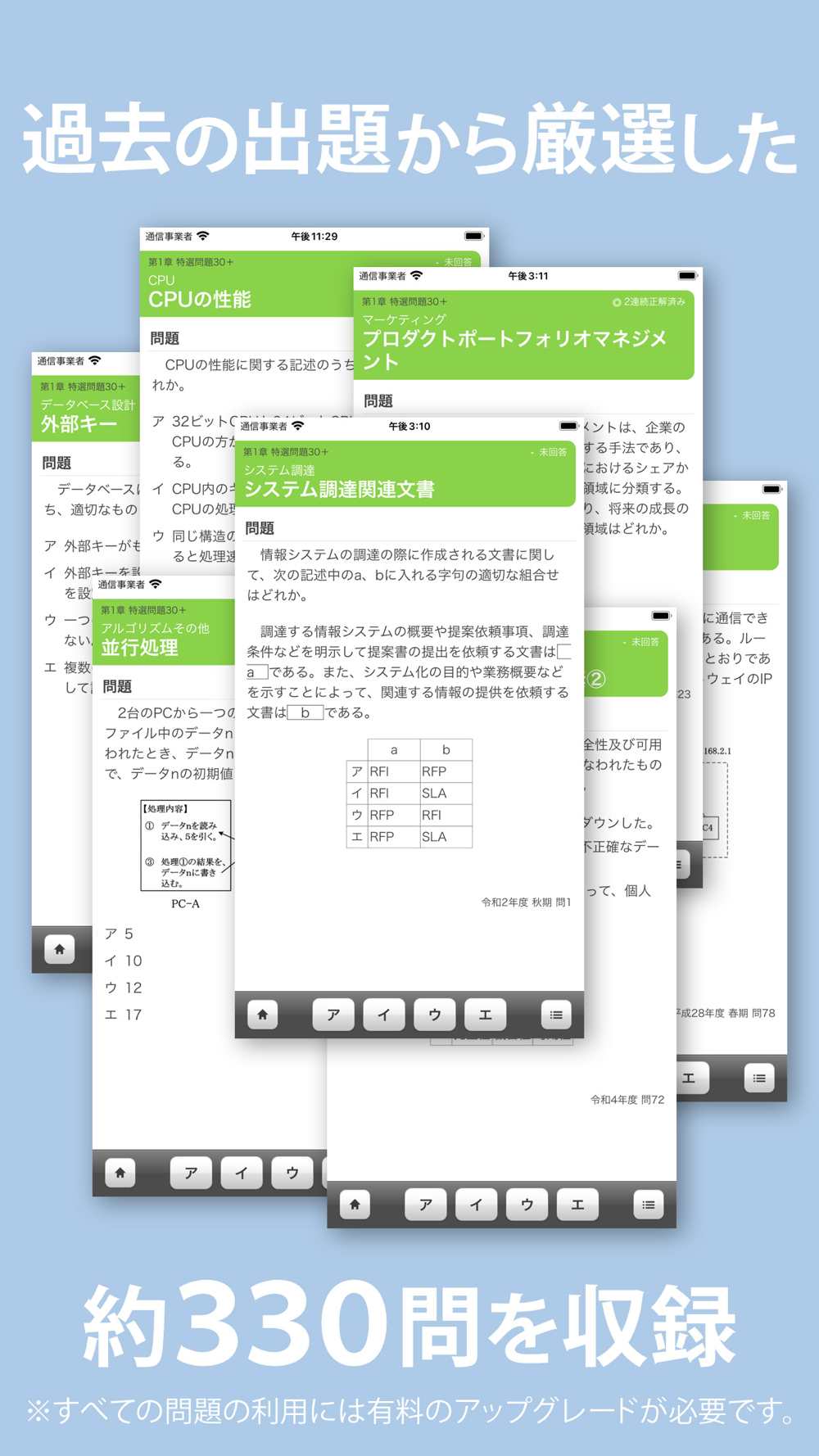 And now, full version upgrade via In-App Purchase is available. With the upgrade, many questions and the random mode function will be added. These will be very helpful for you to pass the certification.