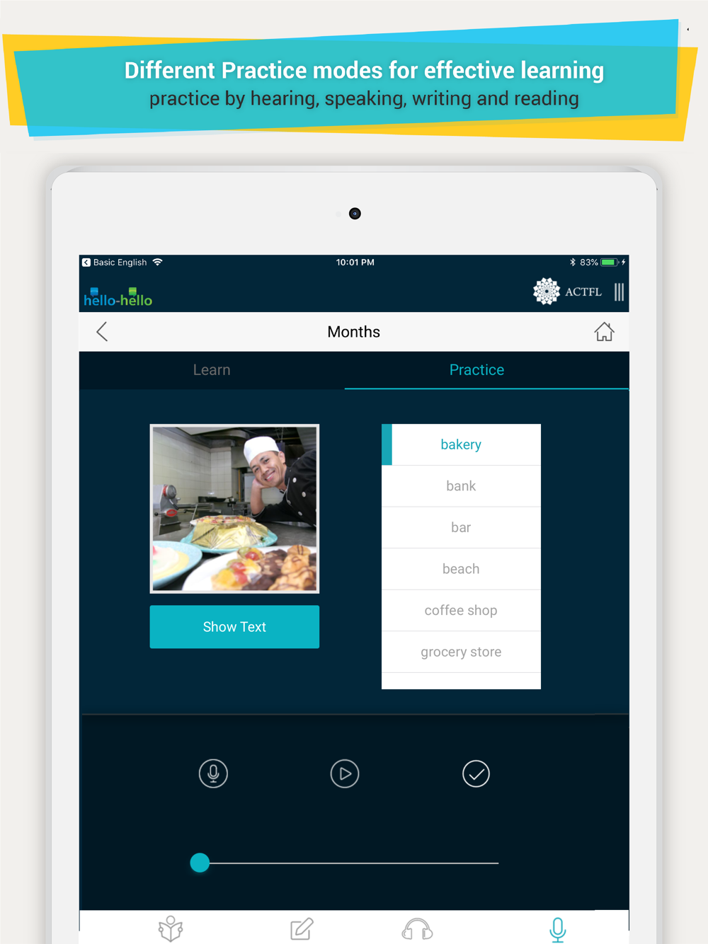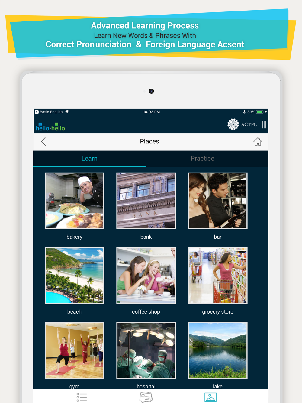 Hello-Hello also has a Conversational Course App that is a robust language course with 30 conversational lessons. The courses were developed in collaboration with The American Council on the Teaching of Foreign Languages (ACTFL), which is the largest association of teachers and administrators of all languages at all levels, serving more than 12,000 educators.