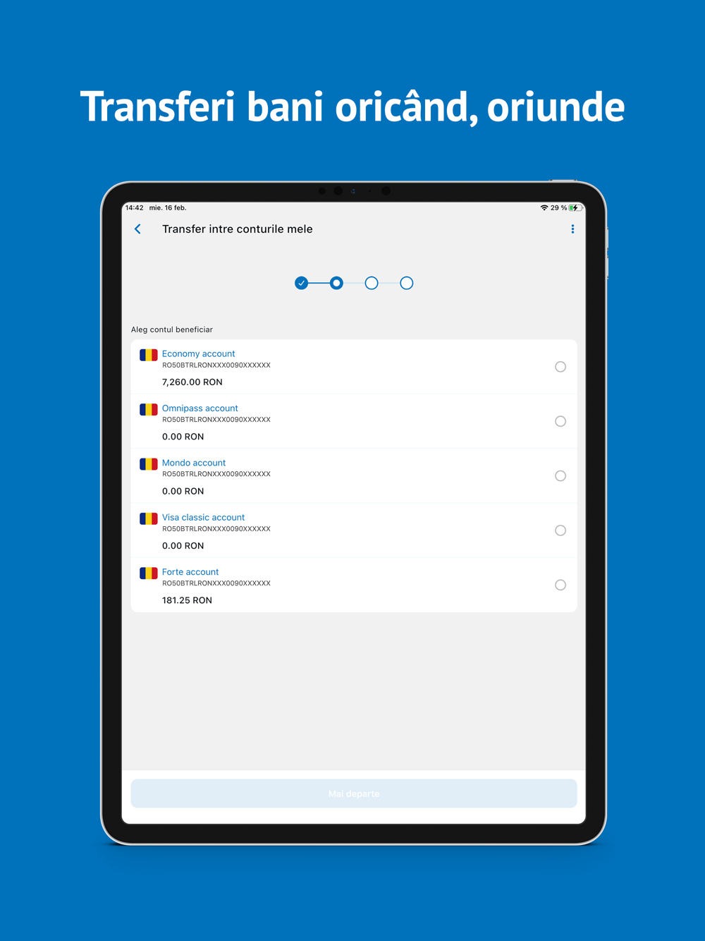 Poți face cam orice operațiuni bancare ai nevoie pentru tine sau pentru firma ta: transferi bani, plătești utilități, schimbi bani, deschizi cont aproape în orice valută, ai acces la harta interactivă cu unitățile și ATM-urile BT, știi totul despre cardurile tale și multe altele. În plus, cu Face Signature & Touch ID ai un nivel de siguranță crescut, dar și confortul că intri în cont mai ușor ca la tine acasă.