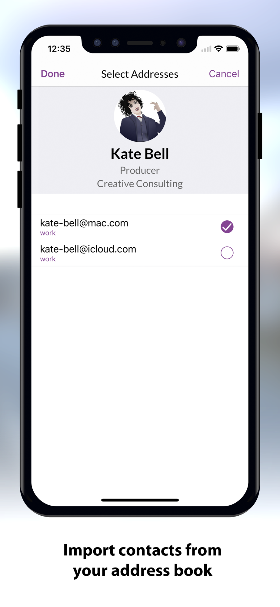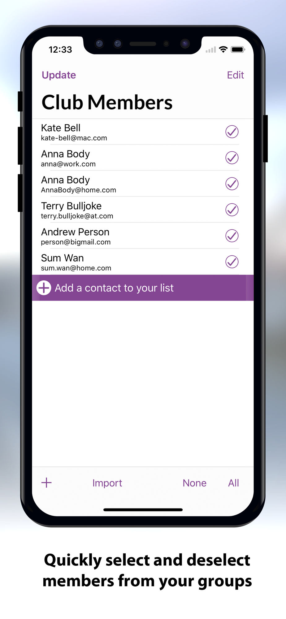 • Contacts can use different email addresses for each group. (Add work address to a work-related group, and home address to a sports group etc.)