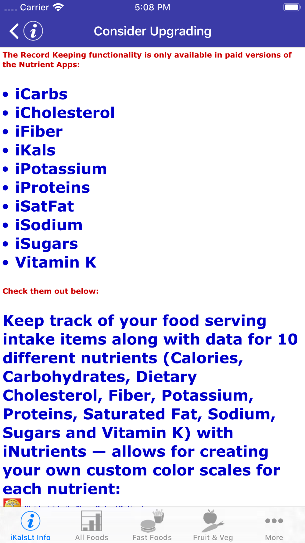 LITE Version ... has full functionality of iKals app, but without print or saving data capabilities. If you need either of these capabilities, consider the full version since there is no in-app upgrade.