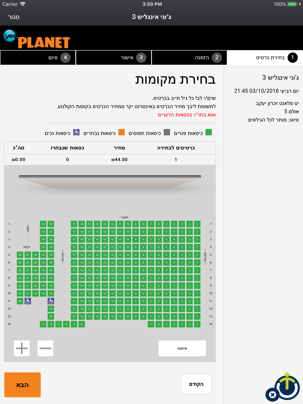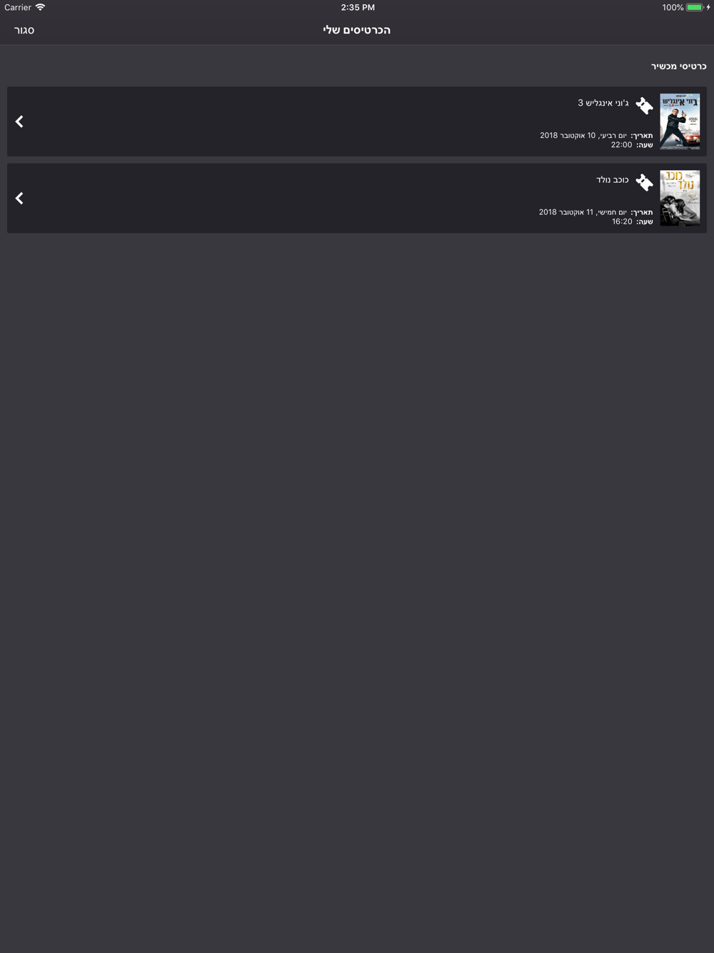 הכרטיסים יישמר באפליקציה ותוכלו להגיע עד לאולם ללא מעבר בקופות וללא עמידה בתור.