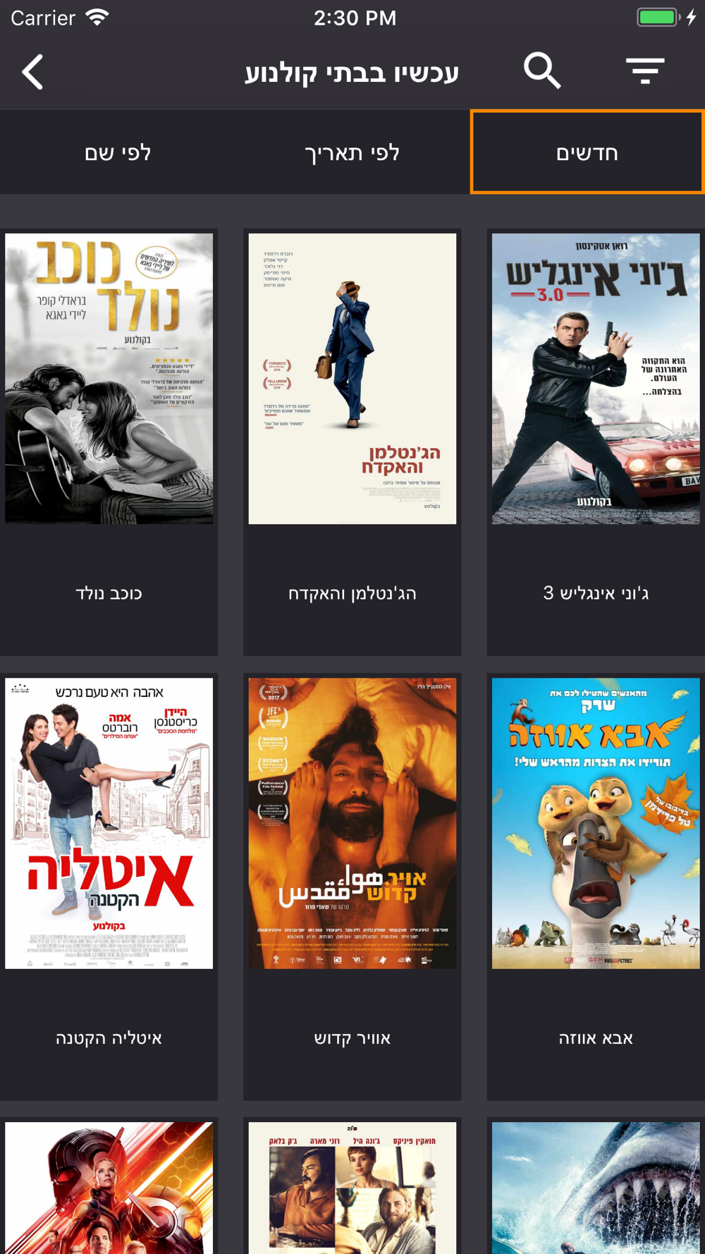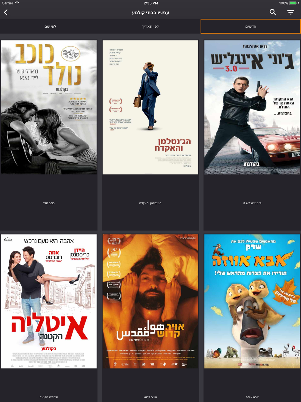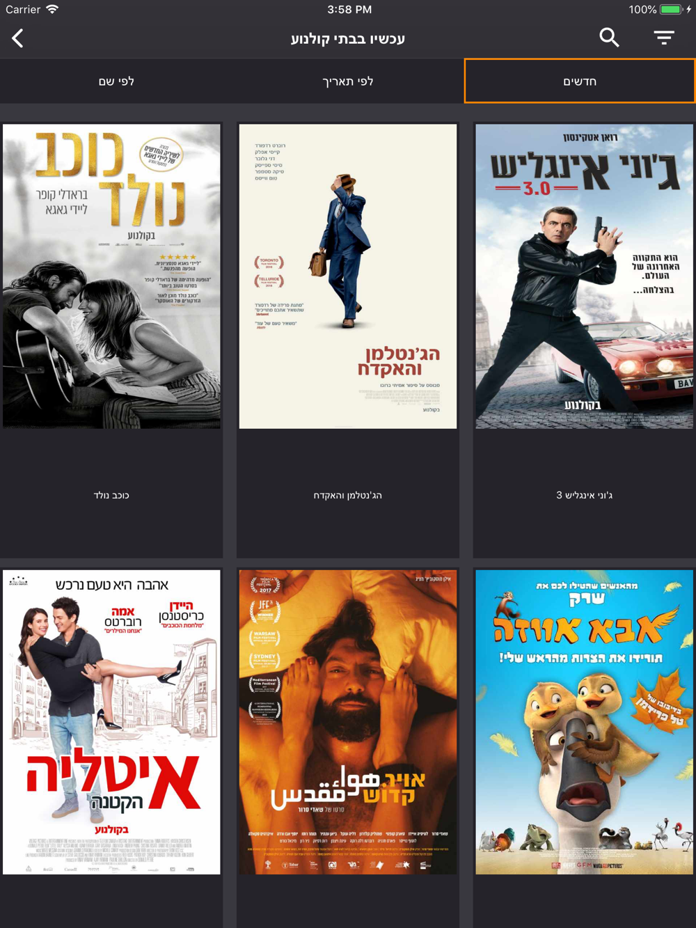 זמני ההקרנות לכל סרט מוצגים לפי קולנוע ולפי תאריך, וניתן לסנן לפי פורמט הקרנה, ז'אנר, סרטים מדובבים ועוד, או לבחור את האולמות המיוחדים המועדפים עליכם – IMAX, DX4 או VIP.