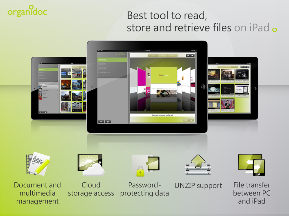 iPad is just like your personal data hub. So, you definitely need a powerful file management app to manage docs, pics, videos saved in iPad or email. OrganiDoc HD provides you a wonderful way to browse docs, pics, videos in different user interface. A protected area is designed for users to save private data and keep it a safe way. In addition, OrganiDoc HD even integrate popular internet cloud disks such as Dropbox, Google Drive, OneDrive, box, iCloud, SugarSync, ASUS WebStorage, Soonr...etc. So, now you can manage all your files scattering in different storages into one app.