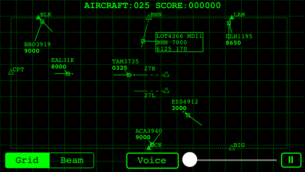 You are an air traffic controller in the Approach radar room of a busy airport. Command planes to adjust their headings, altitudes and speeds and guide them to their final approach fix or exit point at the requested altitude. But be careful! You must always maintain Air Traffic rules: a 3-mile lateral or a 1000 feet vertical separation, just like in real air traffic control services. The more planes you safely land, the faster they go- how long can you keep it up?