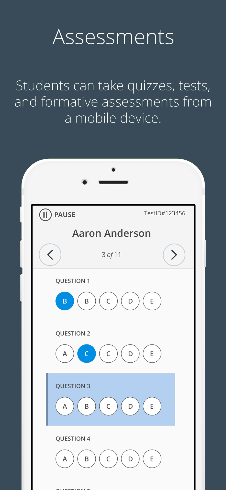 MC Student allows students to take assignments, tests, quizzes, and common formative assessments using an iPod, iPad, or iPhone.