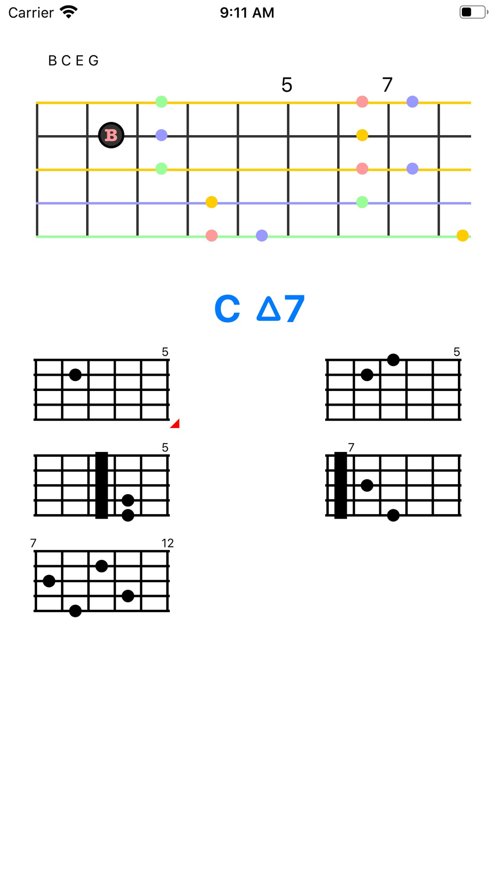 It also works as a reverse dictionary. Setting finger positions manually, you get chord symbols.