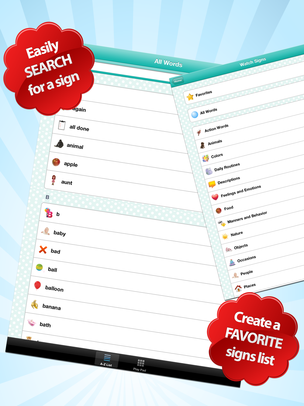 I love this APP ! I looked for a long time before stumbling across this one, it is by far the BEST. I used to work in pediatrics & did a lot of co-treats with speech therapists & learned a lot from them. As they say, "If you don't use it, you lose it" , that happened to me. I especially love the feature of being able to watch the sign ! I highly recommend this for ANY parent/caregiver! Thank you for this incredible app!!" ~Discojd