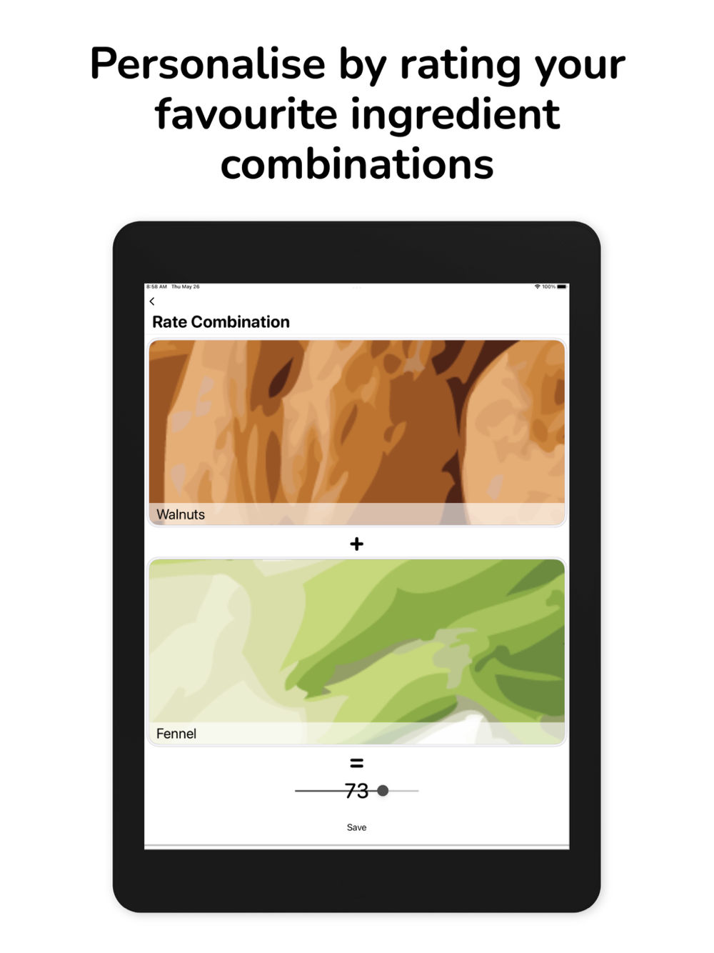 • Personalise the results by adding your own ratings for ingredient combinations.
