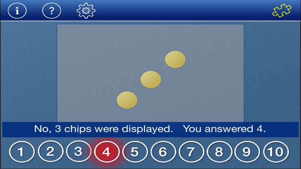 Subitizing, or quickly recognizing the quantity of objects in a group without having to count, is an important number sense skill. Practice recognizing the number of dots in a variety of pattern types including from 1 to 10 dots. Dice patterns and patterns based on 10-frames are included. Patterns are made with one or two colors. Set the length of time a pattern is shown and the range of dots displayed. The iPad version also incorporates up to 20 dots and two 10 Frames