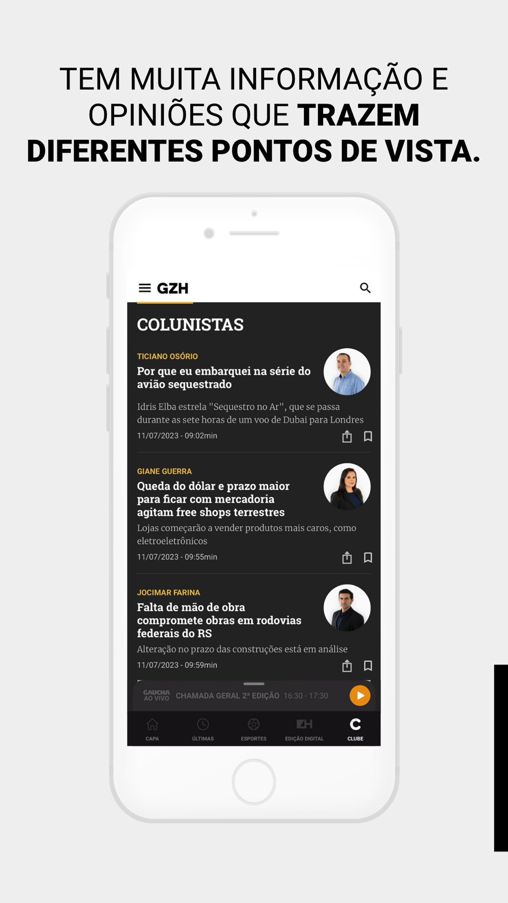 No aplicativo de GZH, você tem em um só lugar todo o conteúdo do principal jornal digital do Estado e os descontos exclusivos do Clube do Assinante. É rápido e simples de usar. E tem tudo o que você precisa: