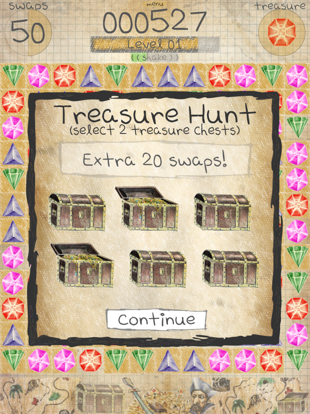 You have some help though. Collect enough "treasure" jewels and go on a treasure hunt to get more points and swaps…