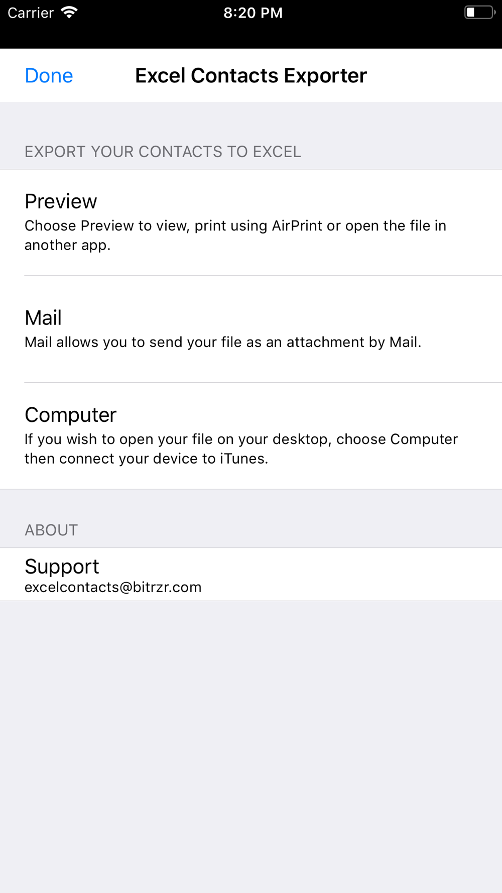 With ExcelContacts Backup & Export you can now to export your contacts to Excel or CSV: