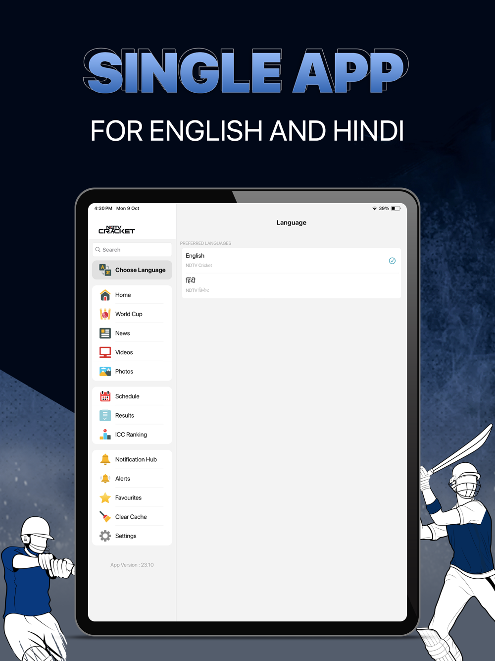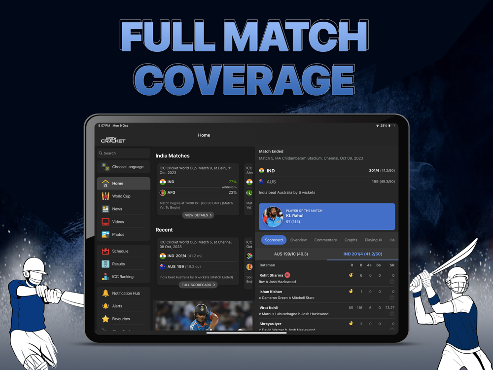 NDTV Cricket app keeps you updated with the information you need at your fingertips with commentary, player of the match, statistics, ICC Rankings and much more!