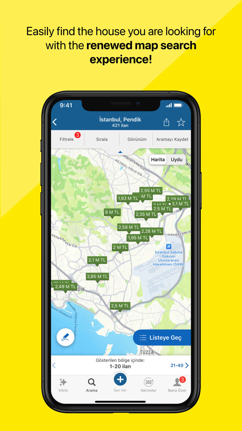 • You can access real estate listings for sale and rent and view the latest projects using sahibinden.com assisting you with your real estate, land, commercial searches.
