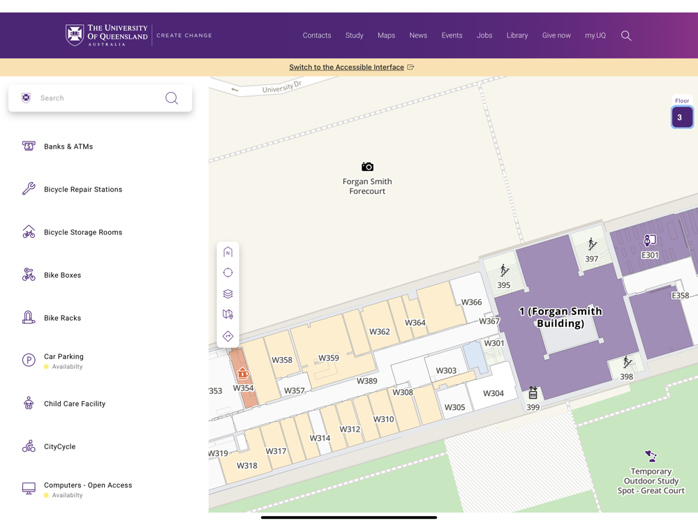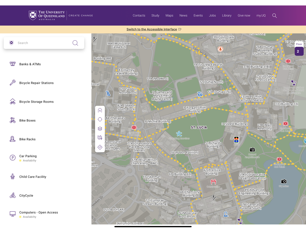 UQ Maps helps get you where you need to go, with outdoor and indoor maps and navigation across UQ campuses. Turn-by-turn wayfinding allows you to navigate directly to your next class, meeting, meal or study spot.