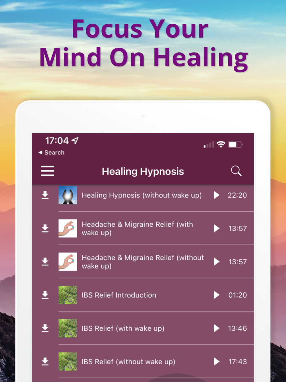The science of psychoneuroimmunology has demonstrated that how we think and how we feel can have a big influence on how well we cope and recover from illness and injuries. This app features powerful hypnosis sessions designed to help you relax and accelerate the body’s natural healing processes.