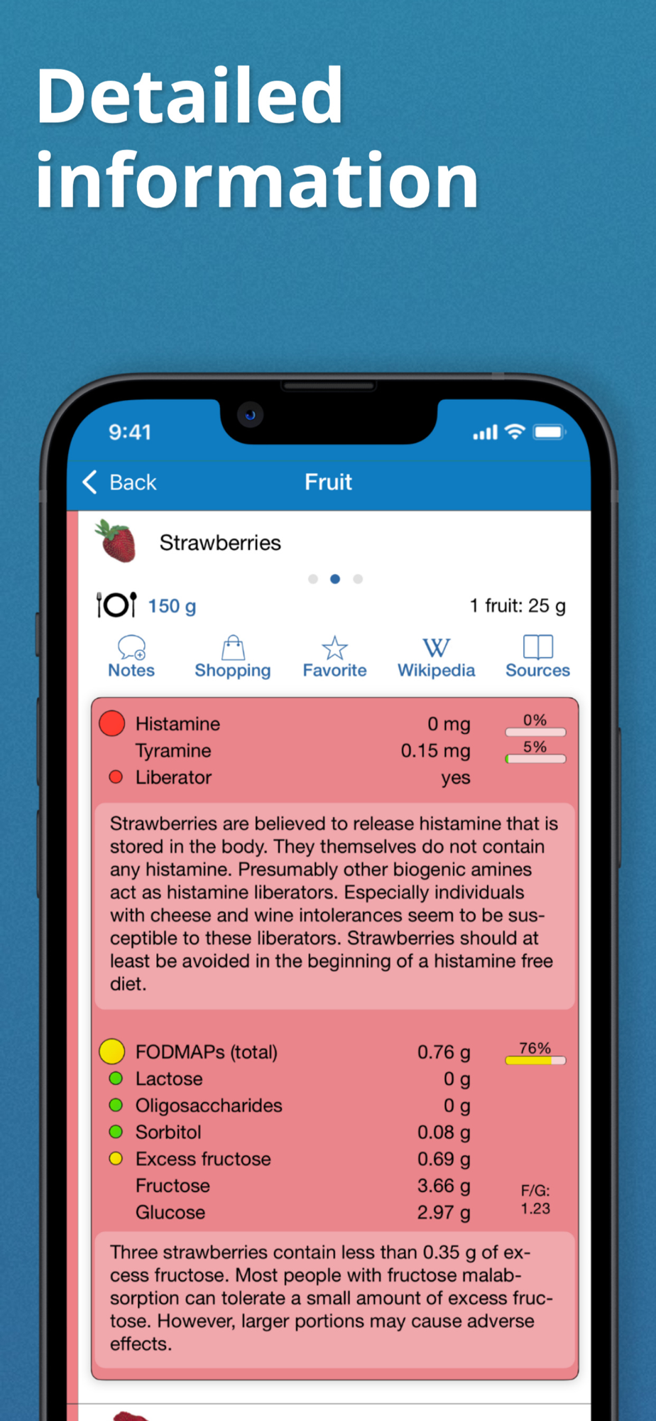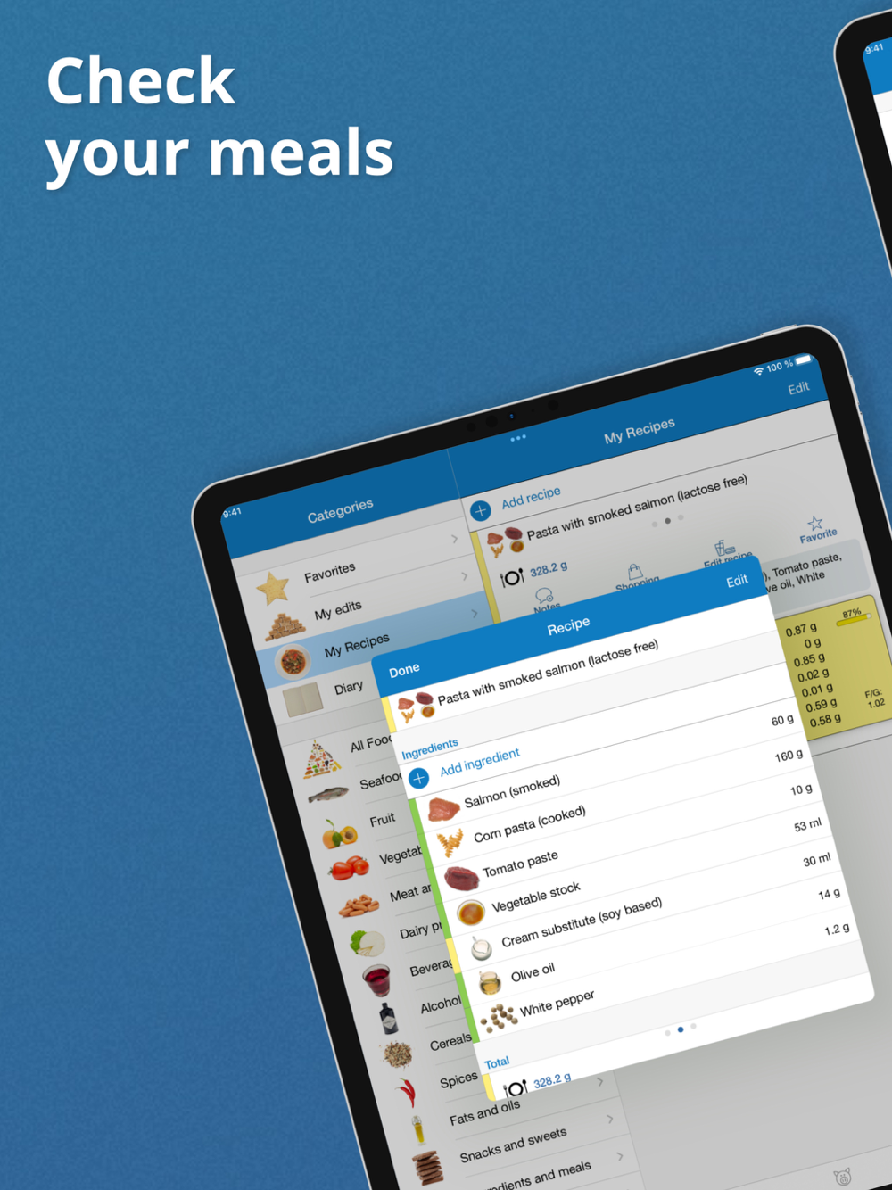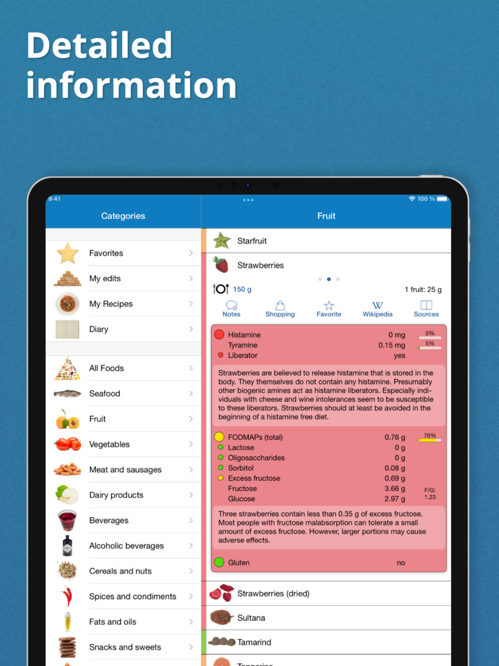 The app Food Intolerances helps you if you have to stick to a restricted diet after being diagnosed with food intolerances, sensitivities or allergies. It offers you an extensive food list with more than 1,100 foods, tables with the most important data and detailed comments for assessing the tolerance.