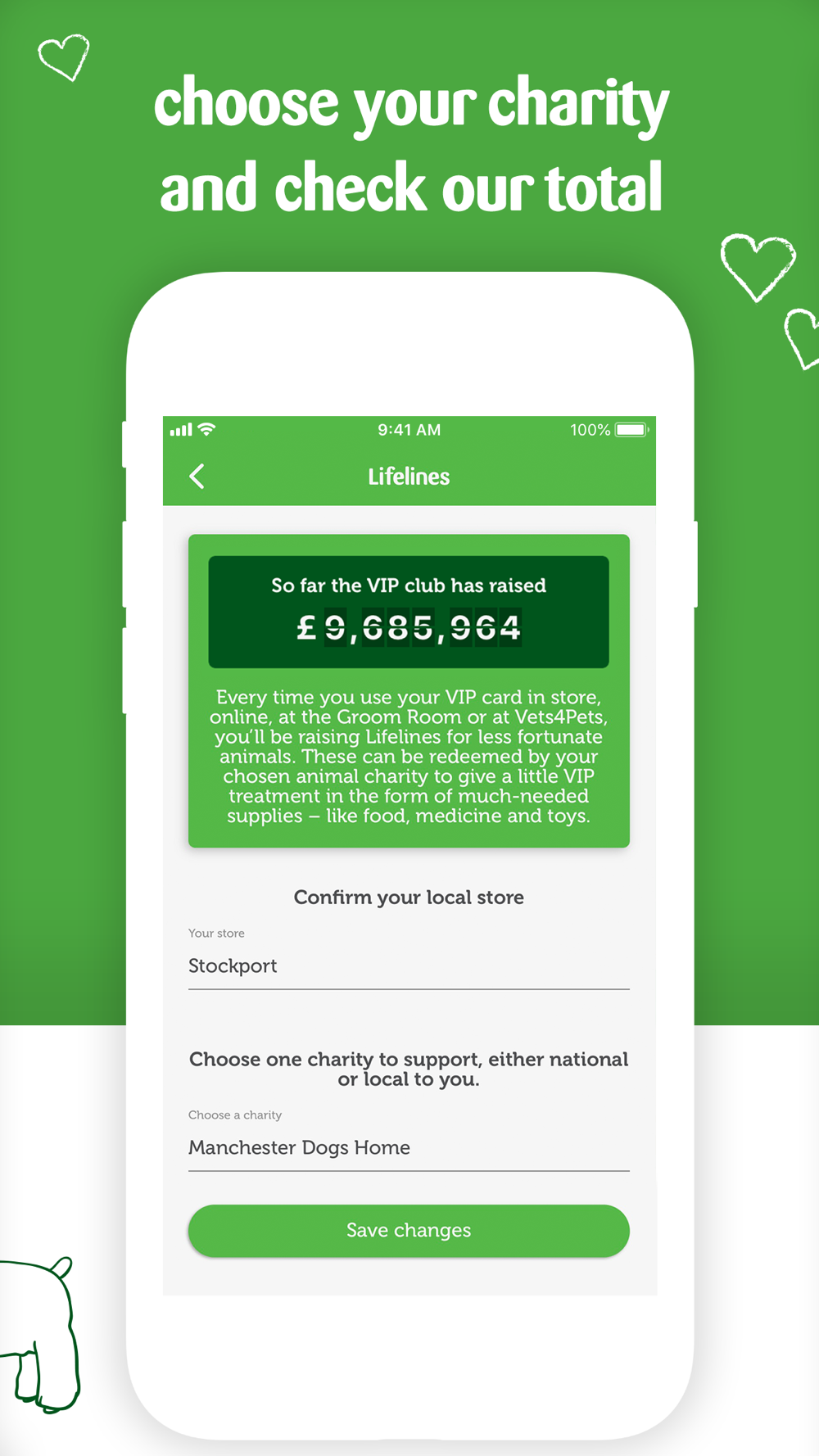 • Earn Lifelines by scanning your VIP card and support an animal charity of your choice every time you shop.