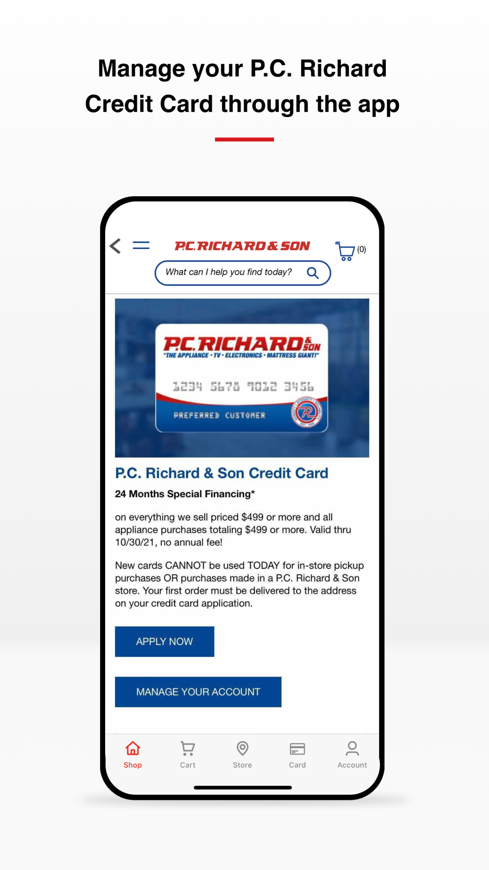 • Manage your P.C. Richard & Son credit card account