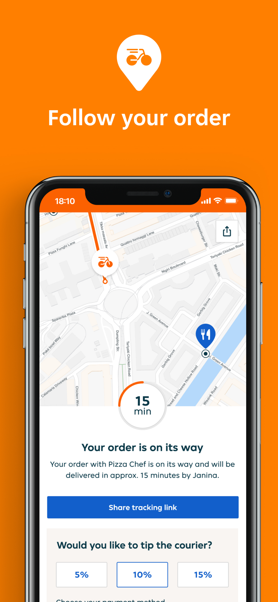 Simply enter the location of the delivery destination or let the app find your exact GPS location.