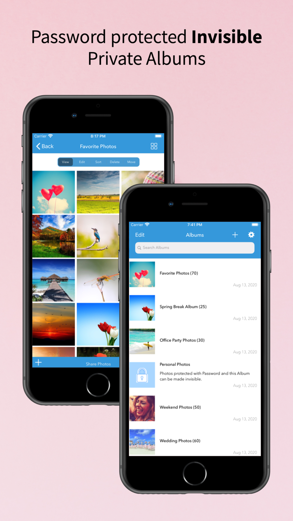 + Three layers of privacy with passcode, password and invisible mode for private albums.