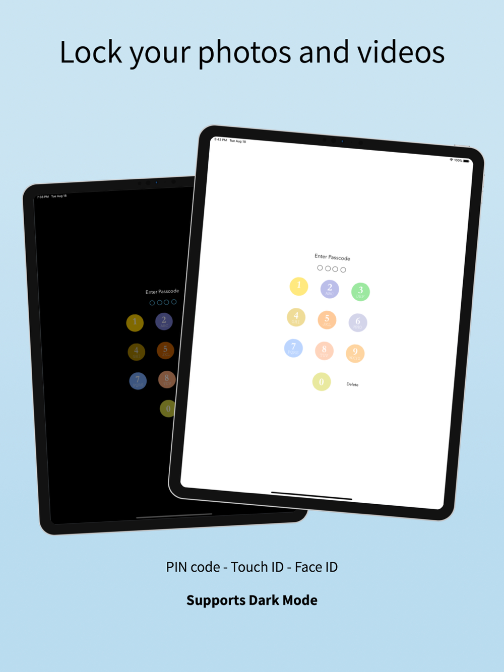 Lock your photos and videos with 6 digit passcode and keep your private albums protected by password in invisible mode.