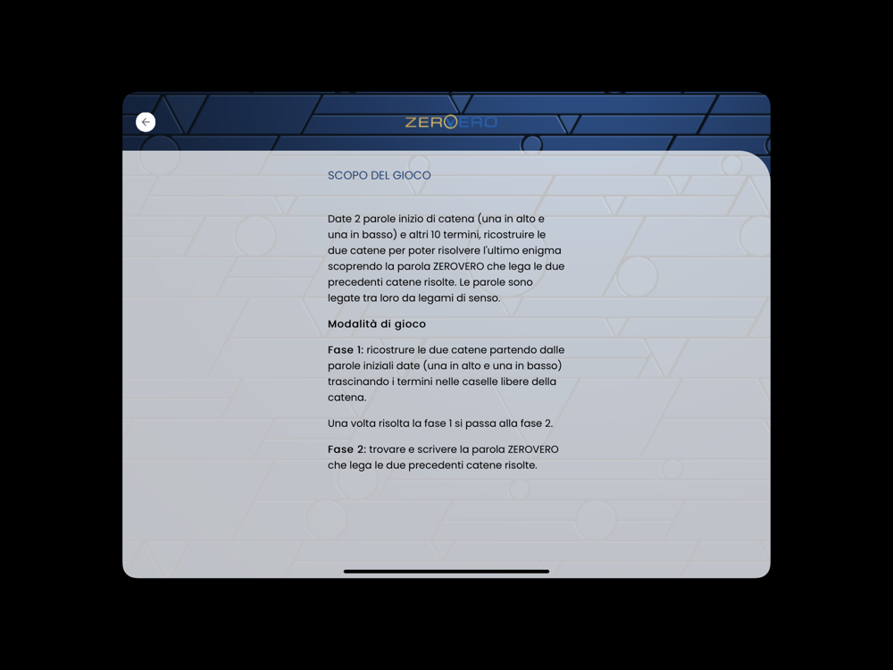 L’App Zerovero è un’estensione dell’omonimo format televisivo della Radiotelevisione Svizzera di lingua italiana. Si tratta delle CATENE CONCORSO un gioco che prevede di legare delle parole tra loro con legami di senso formando una catena.