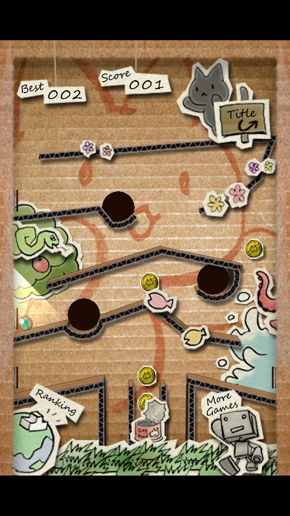 Cute cat stage made of paper, realistic pre-rendering 3DCG stage, please get a coin. Operating with realistic ball physics of motion.