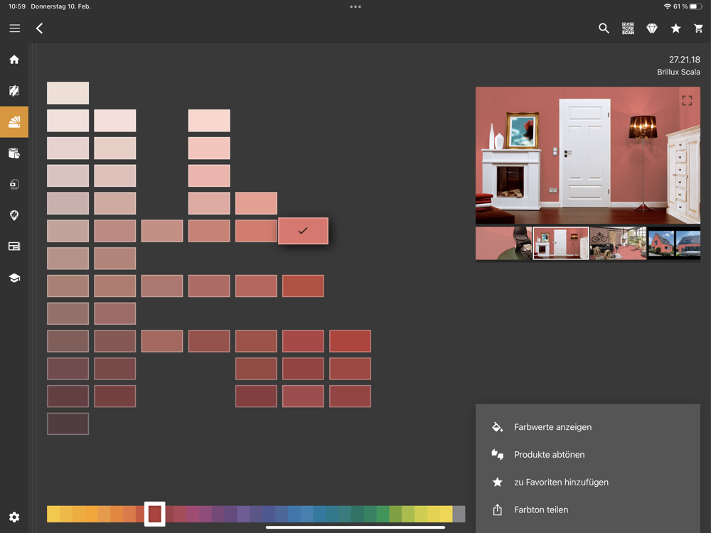 Farbsystem – zur Werkstatt oder direkt zur Baustelle bestellen. Je nach Einstellungen der Sprache und Region im iOS-Betriebssystem werden beim Online-Update die verschiedenen Landessortimente in entsprechender Sprache in die App geladen.