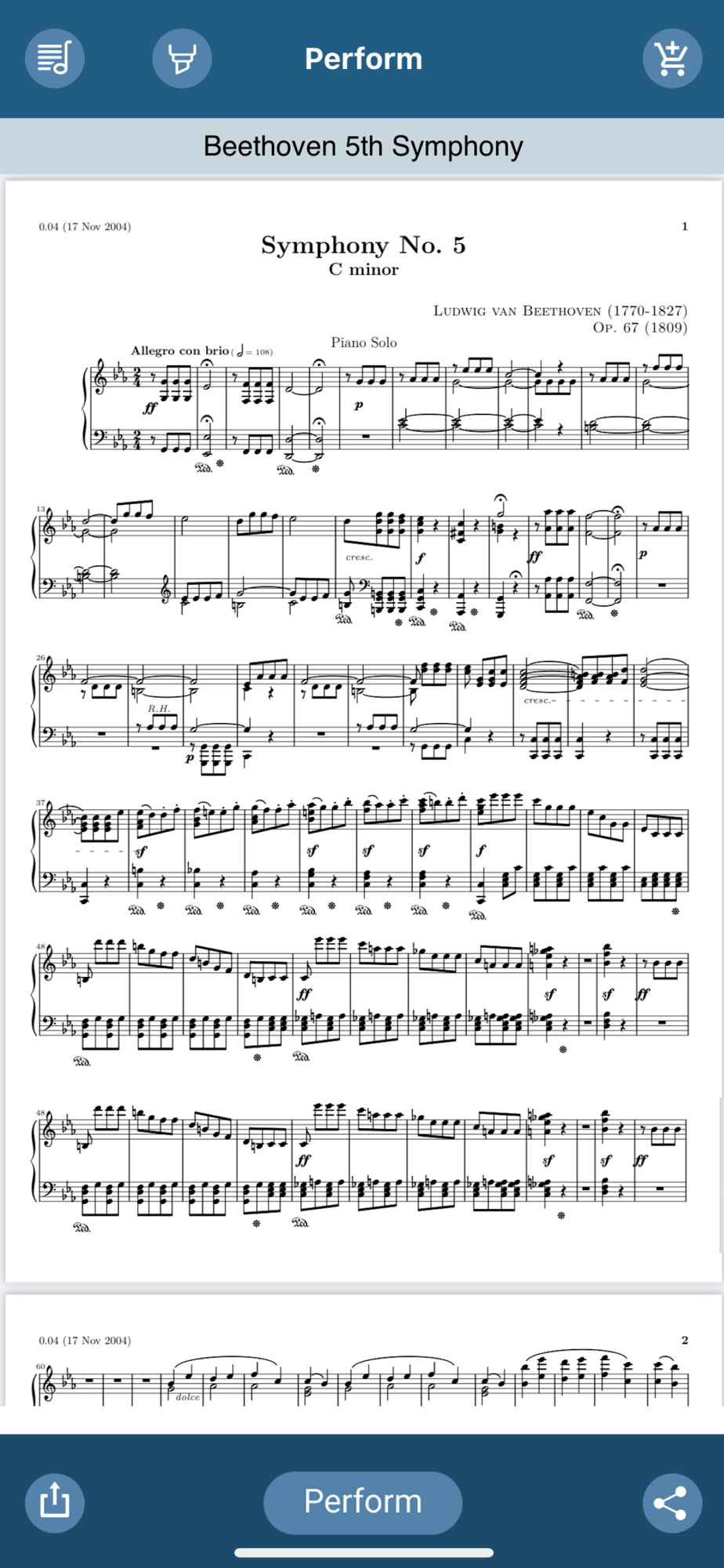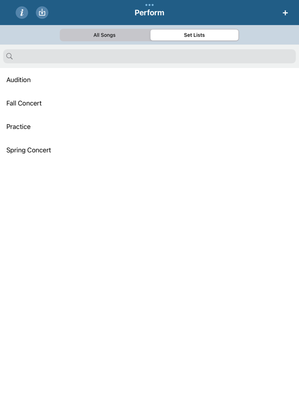 Stop lugging around binders of scores from place to place. Import and manage thousands of scores with ease. Organize scores into setlists and easily arrange them to your liking with drag-and-drop, then tap Start when you're ready to perform. It's that simple.