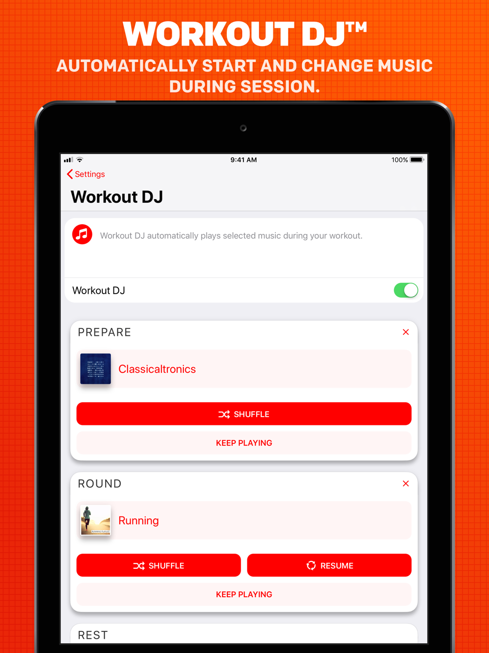 The built-in Workout DJ can automatically play selected music every time you workout. External display support allows you to use from a large distance on your large screens.