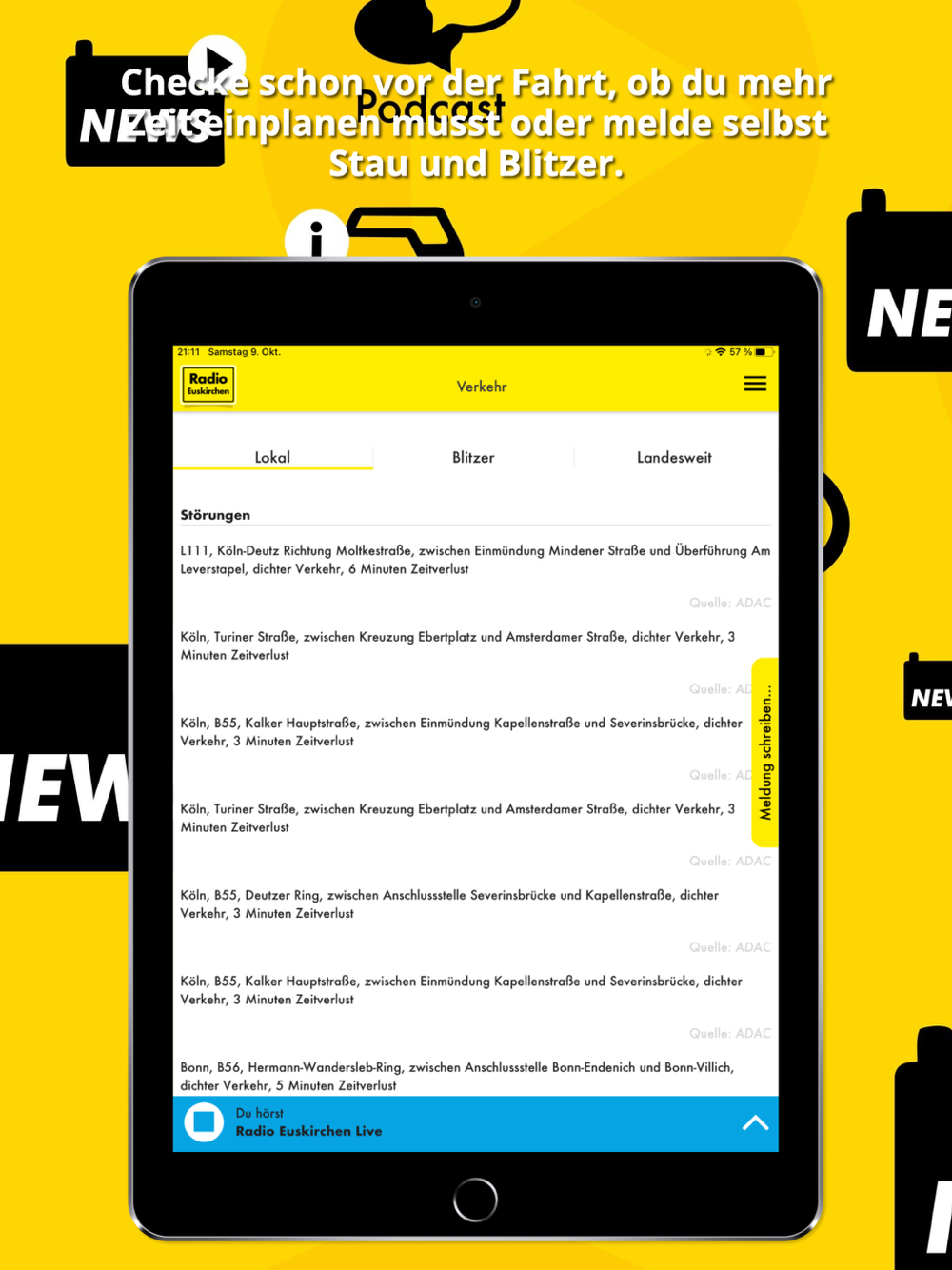 Mit unserer App bleibt ihr immer auf dem neuesten Stand. Wir bringen alle Infos aus dem Kreis Euskirchen auf euer Smartphone. Aktuelle Nachrichten, Infos zum Programm, Events und Aktionen. Hört das Programm über unseren Livestream oder wählt einen unserer Channel aus. Außerdem bekommt ihr die wichtigsten Infos direkt als Push-Mitteilung auf eurem iPhone oder auf der Apple Watch.