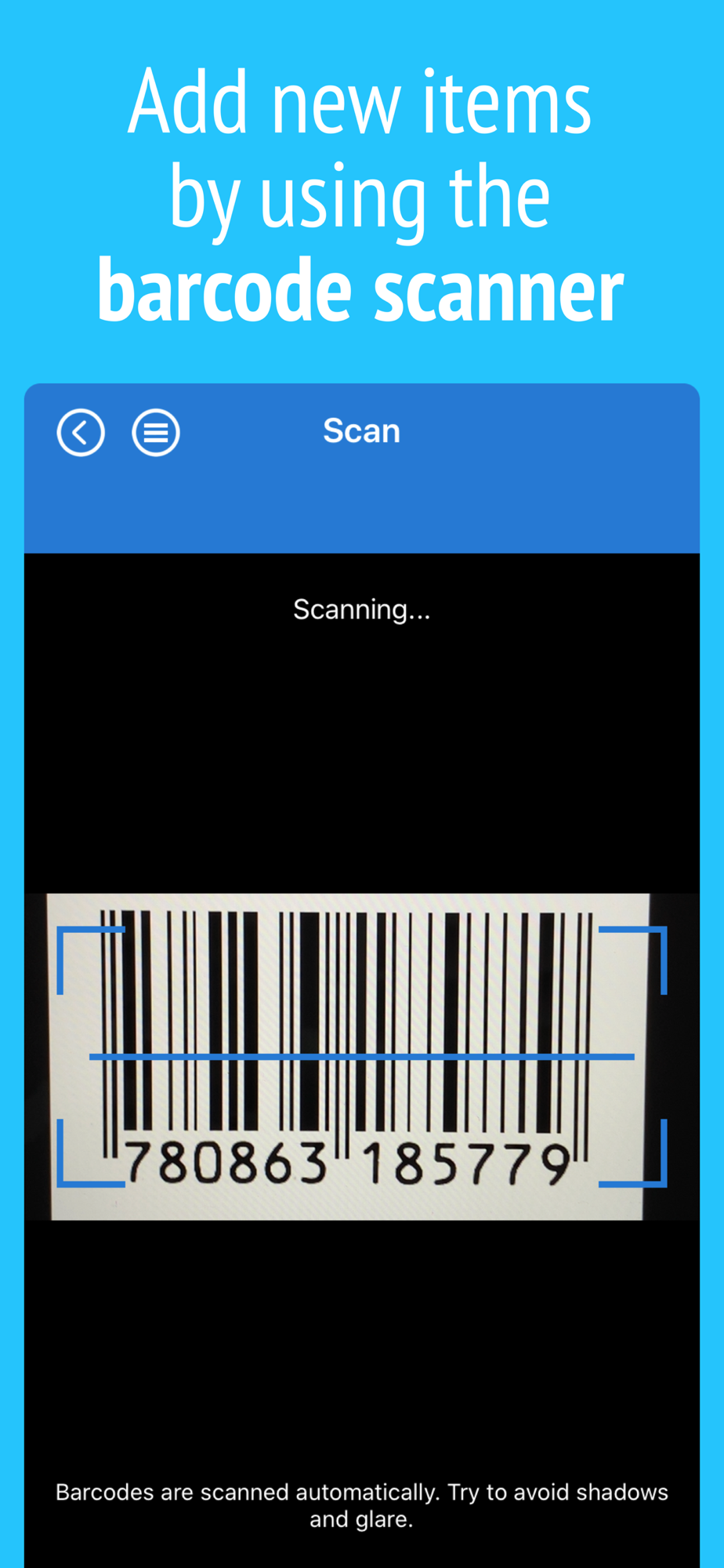 ● Browse hundreds of preloaded items, scan a barcode or insert your own items.