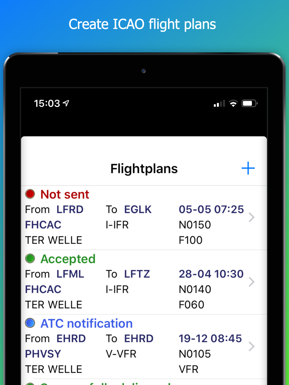 With this app you can create and file ICAO flightplans directly from your iPhone and/or iPad. This application is to be used solely by aviation pilots holding a valid pilot license.