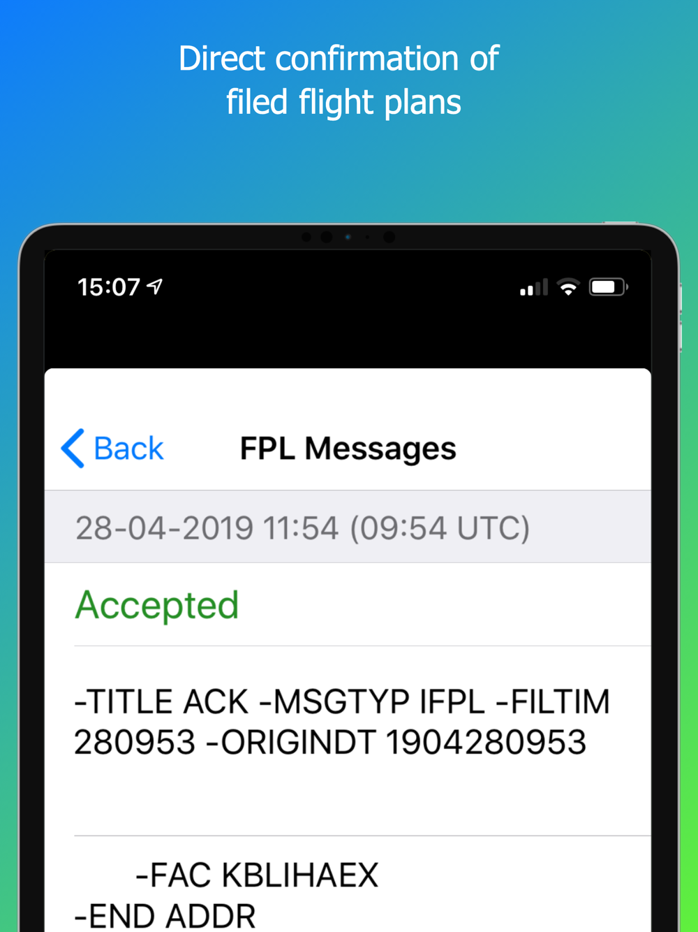 We added Apple Watch support. Your Apple Watch will notify you of changes in the status of your current and upcoming flightplan(s). You can file, delay or cancel your flightplan right from your watch.