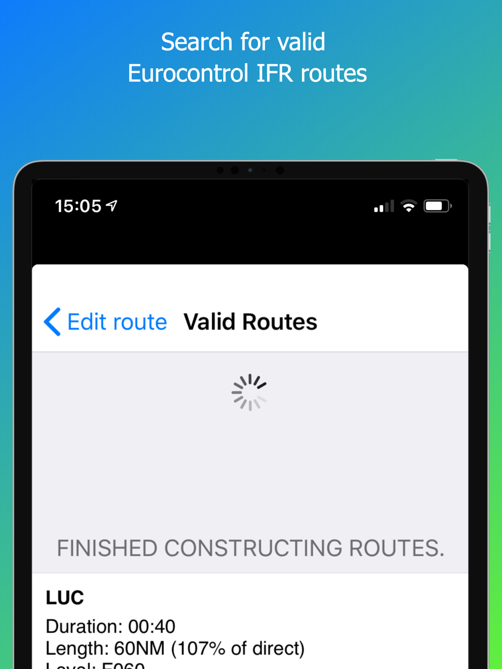 - An advanced IFR routing engine covering the Eurocontrol area is provided where you will benefit from the most optimal IFR routes.