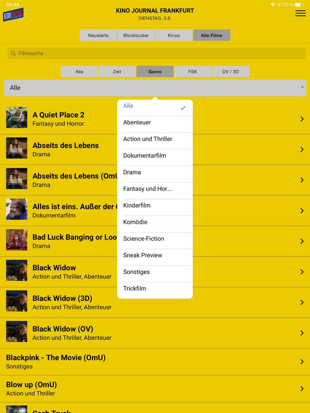Kino Journal Frankfurt: alle Kinos, alle Filme, alle Vorstellungszeiten in einer App.