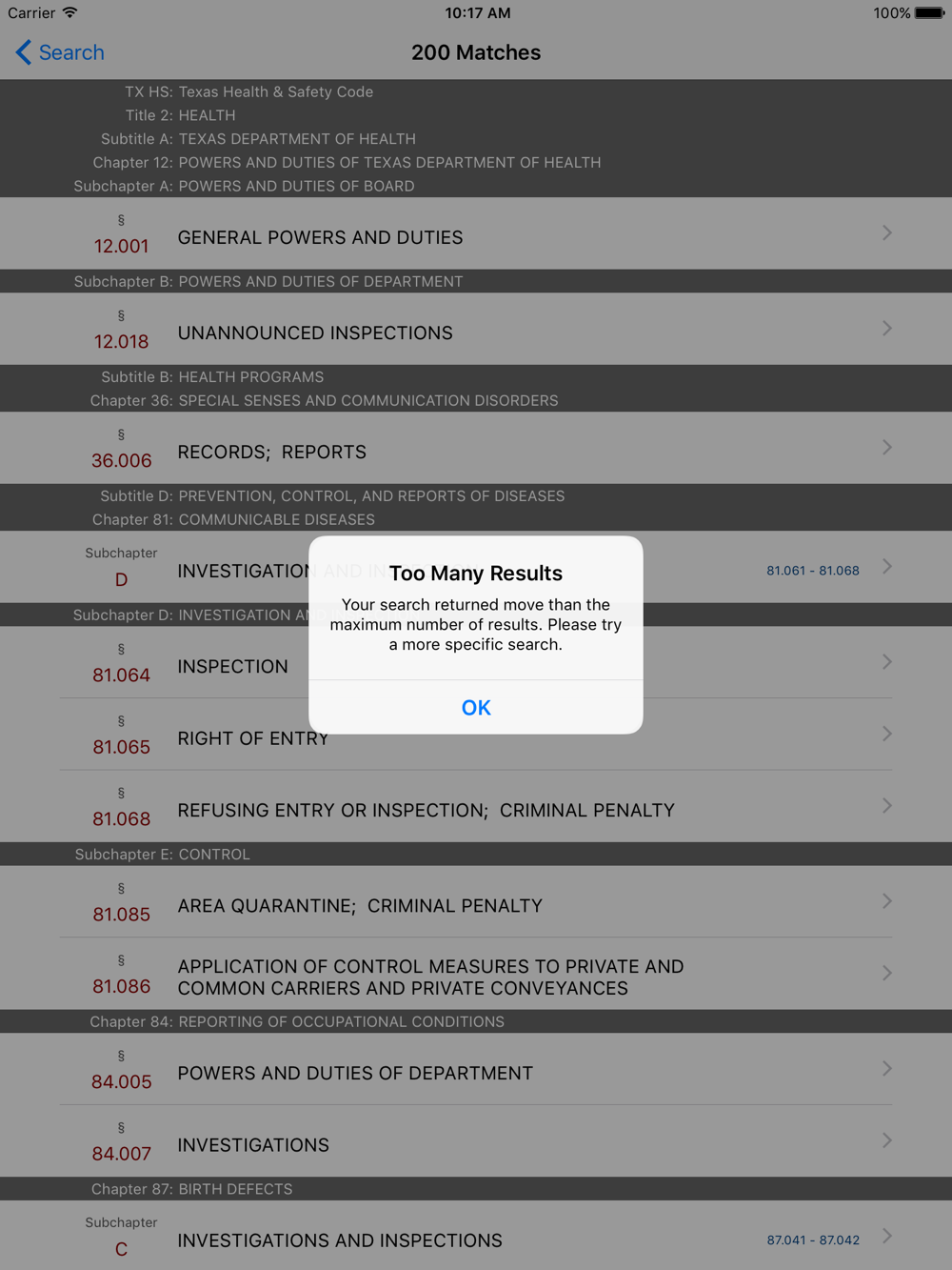 Disclaimer: The information in this app is not intended to replace official versions, is subject to revision, and should not be considered legal advice. Tekk Innovations LLC presents this information without warranties, express or implied, regarding accuracy, timeliness, or completeness. In addition, this disclaimer may change at anytime. When necessary, consult primary source material.