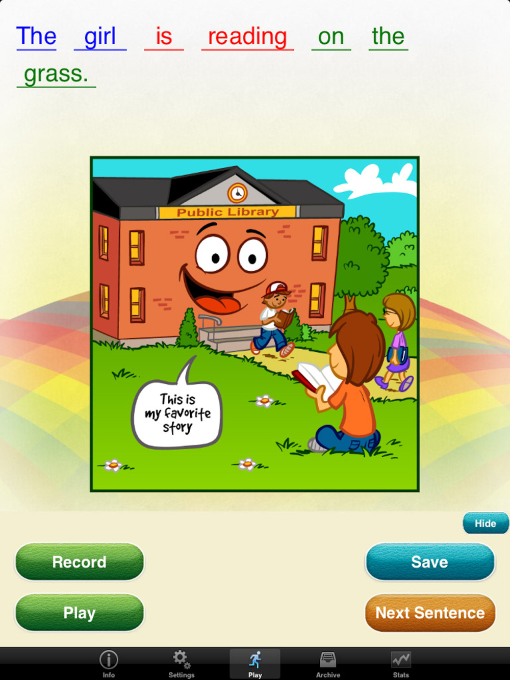 Students will learn how to recognize the parts of sentences such as nouns, verbs, and prepositions, improve their understanding of how combinations of these parts create basic sentence structure. Students have the opportunity to record their sentences in their own voice to improve their receptive and expressive language skills.