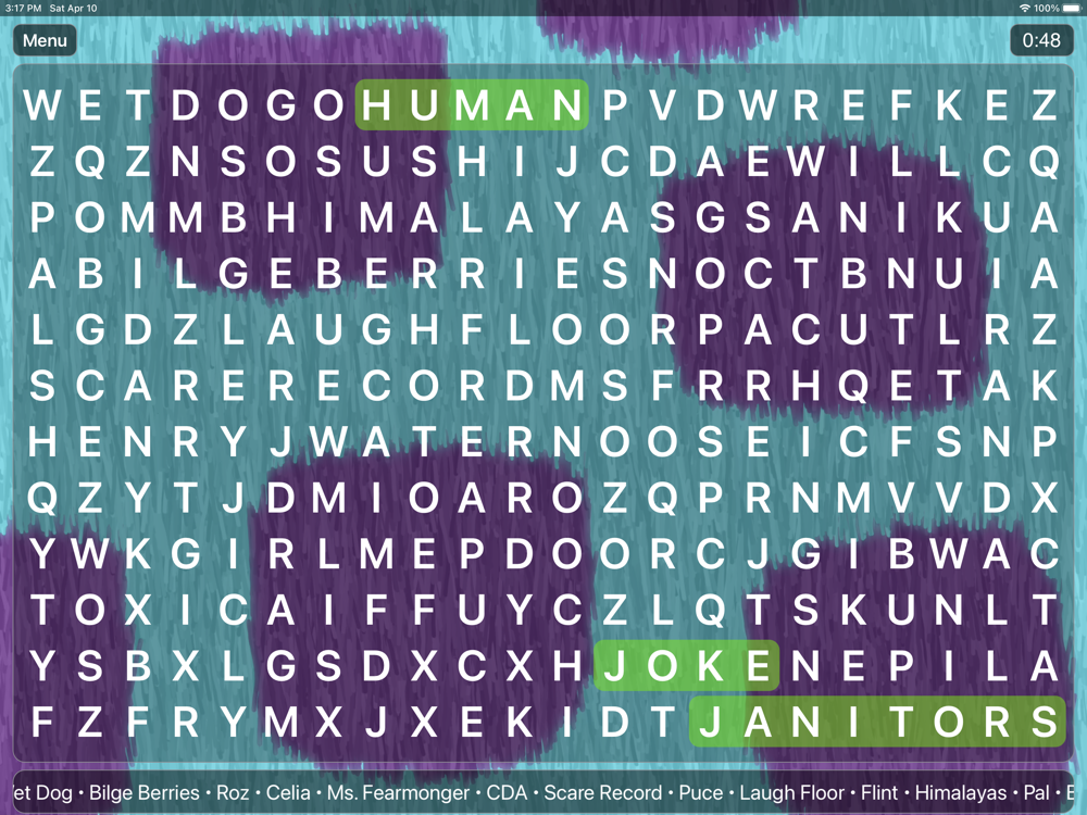 • Word Search Game with randomly generated boards