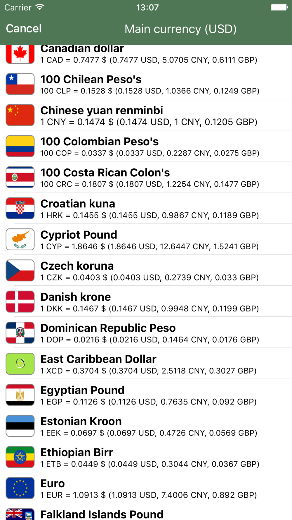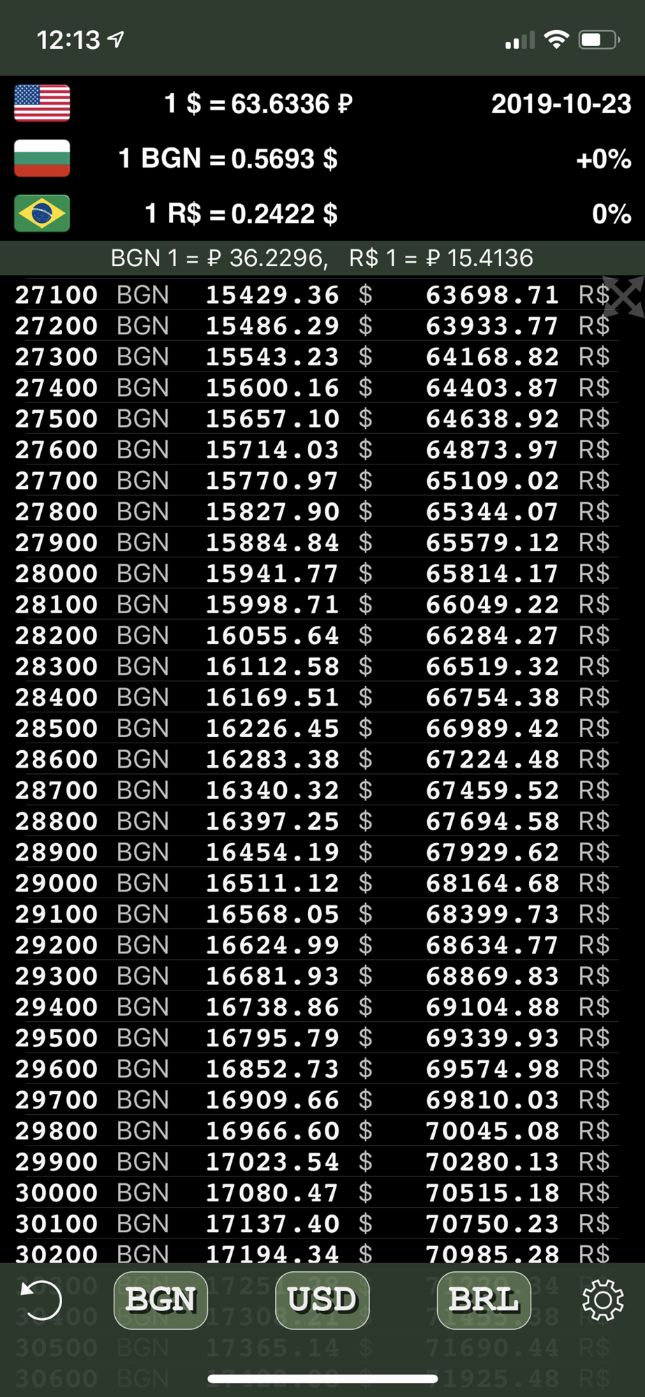This simple tool is a must for everyone who deals with prices in different currencies to save money or to satisfy curiosity:). With the touch of one finger to see the exchange rates of the three countries in the most readable form. You can quickly scroll through the table to the right you see the parity of currencies of various countries. For example, in travel, in most cases, we need exactly three currency - the currency of your home country, the currency of the host country, and the dollar (or euro).