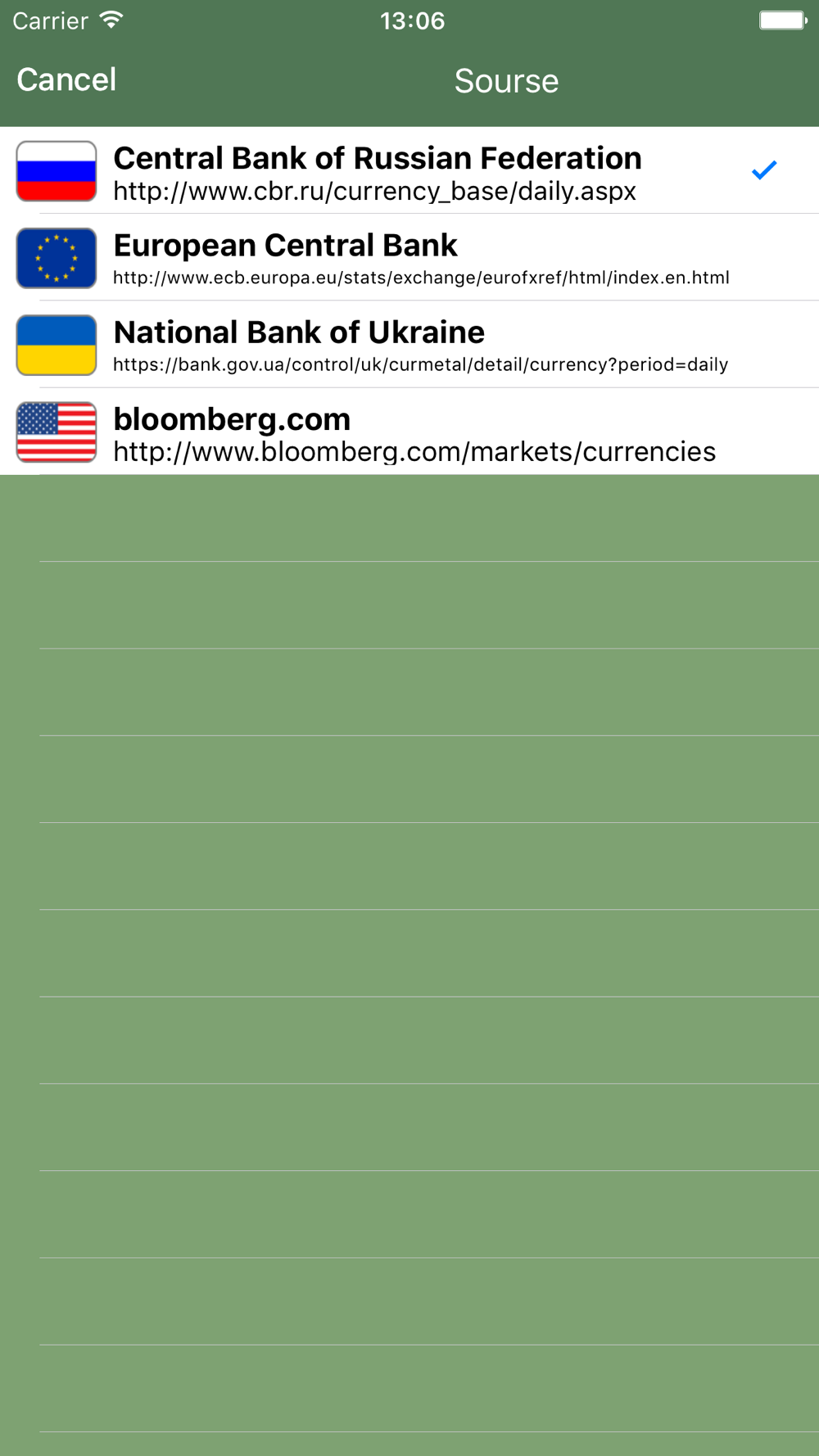 Data on exchange rates, the program loads directly from the web-site of the Central Bank of the EU or Russia or bloomberg.com, and does not use any intermediate server. The developer is not responsible for the accuracy of these data as well as for any consequences of using this information.