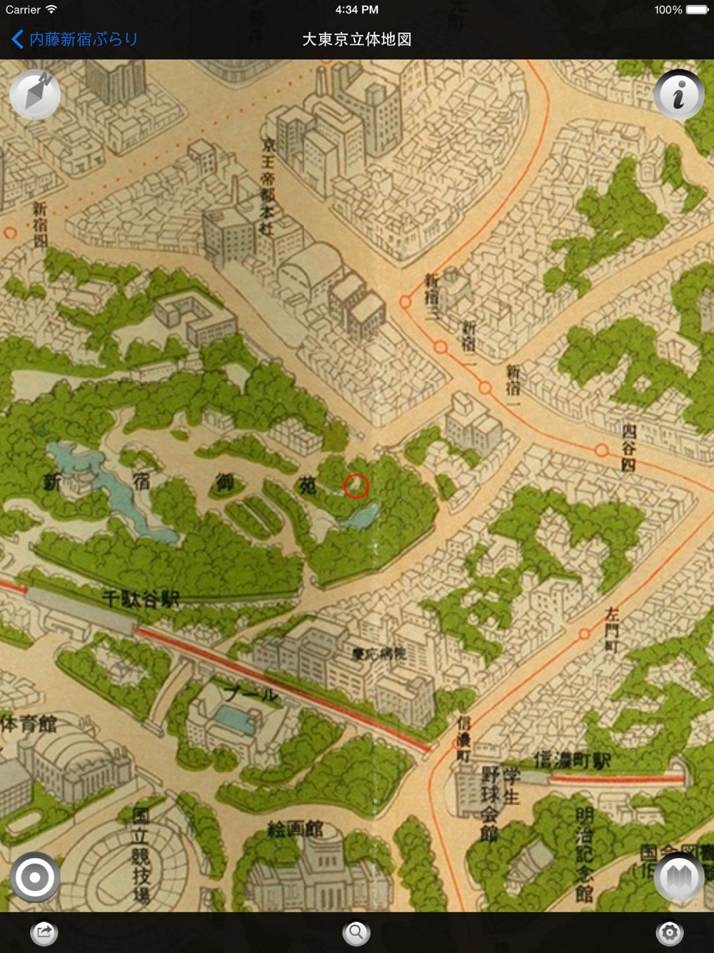 1. TakatoBurari shows your location using GPS. Using TakatoBurari on iPod Touch or iPad WiFi might not show accurate current position.