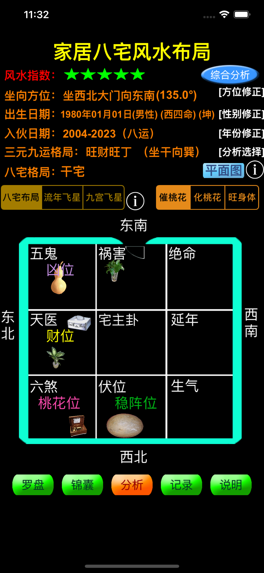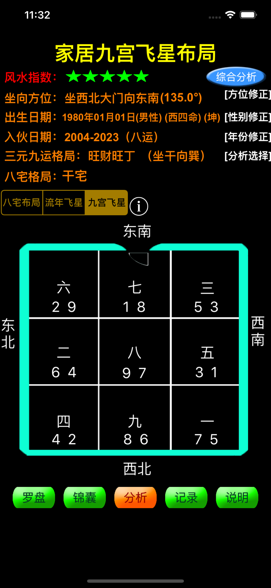 本软件是基于「三元九运」、「八宅法」和「九宫飞星」这三套相当有系统的理气风水原理而设计。根据电子罗盘或输入的大门方向,程式先使用「三元九运」确定这居室的整体吉凶性质如「旺财旺丁」、「损财伤丁」等等而提供风水指数。同时程式亦以「八宅法」找出居室内之吉凶位置如「财位」、「凶位」等等,从而提供建议让用户决定室内房间及家具之最佳位置。最后本程式还使用每年的「流年飞星图」找出当年之病位、桃花位、财位及文昌位,作催财、化病、催桃花或人缘、和旺考试及读书之用,而「九宫飞星」功能是根据「玄空紫白诀」理论进一步详细地分析家居或办公室的风水布局。