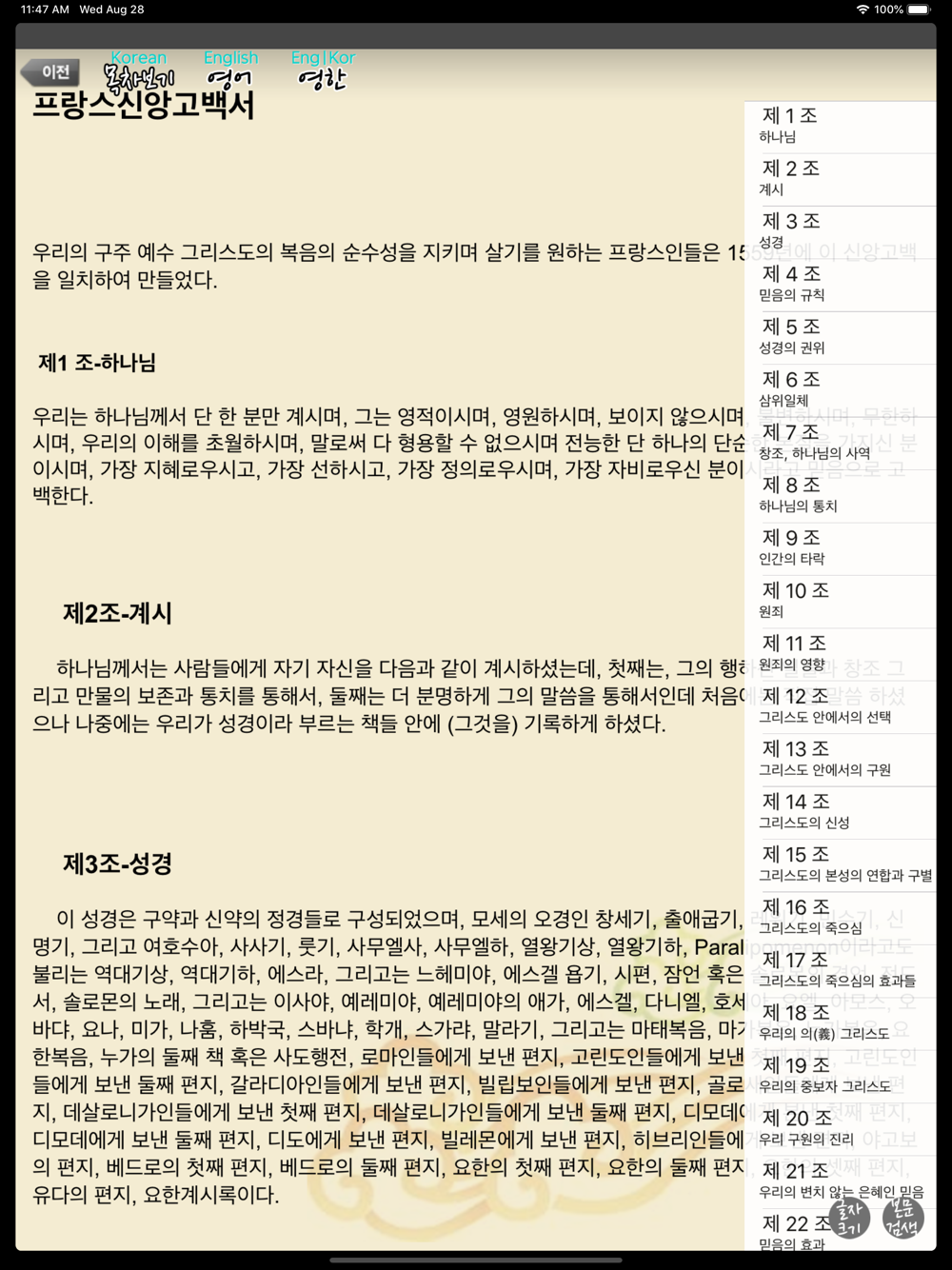 - 본문보기 : 선택된 교리의 한글, 영어, 영한대역 (가로보기 지원)