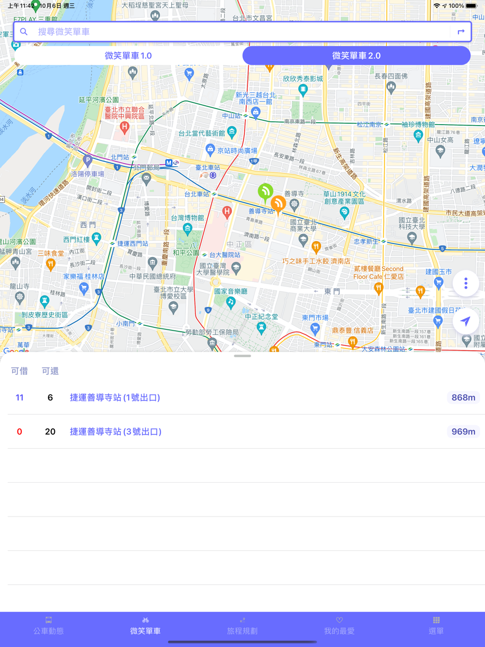 提供大臺北地區交通即時資訊及旅程規劃功能,以及依照目前GPS所在位置提供附近站牌及YouBike站位資訊。