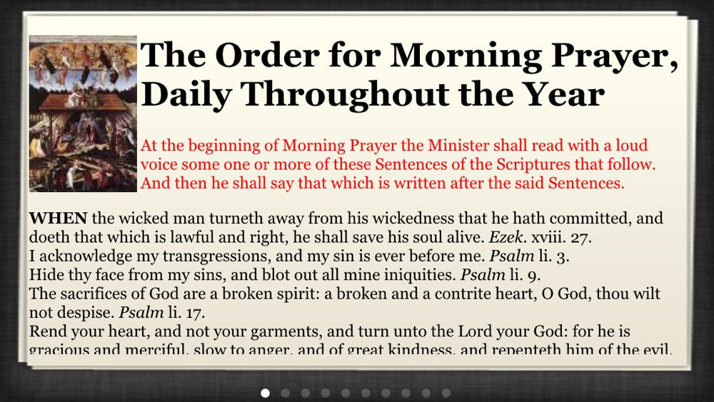 For those who are unaccustomed to this kind of spiritual discipline, the iPray app provides an easy introduction to structured daily prayer and Bible reading, based on the ancient practice of the Church as refined by the English Reformation. Download this app and enjoy the rich heritage of daily devotion from the Book of Common Prayer.